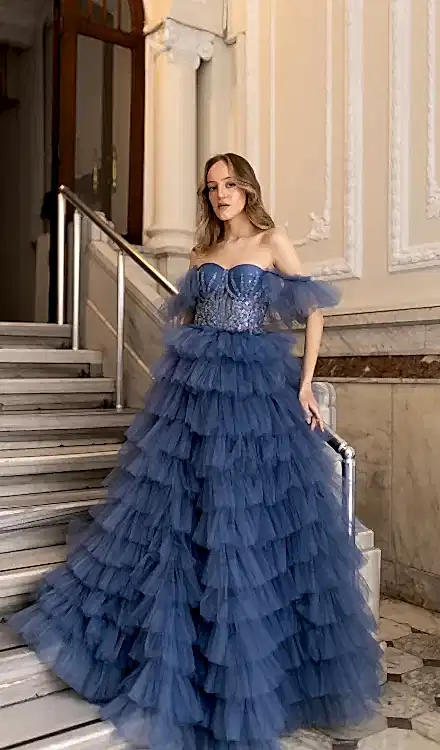 Blue Dimond – Mavi Taşlı Abiye Elbise