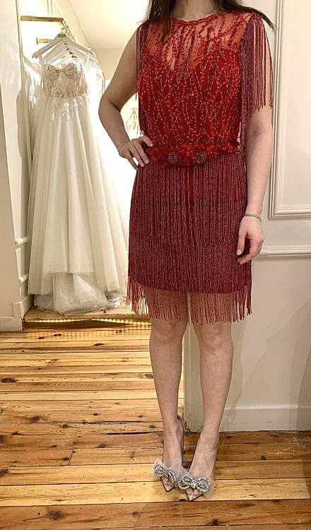 Lotus -Payetli mini kırmızı elbise