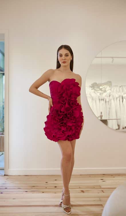 Özgül Engin – Çiçek detaylı kırmızı elbise