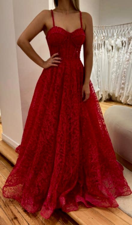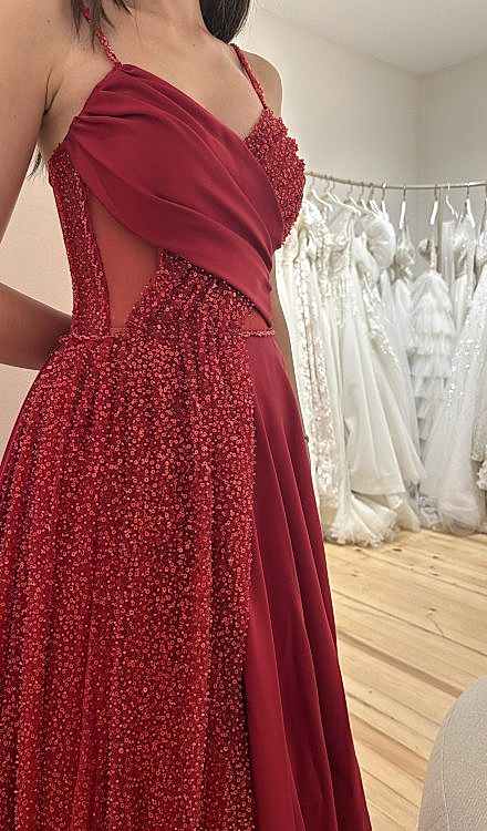 Payet detaylı kırmızı kına elbisesi