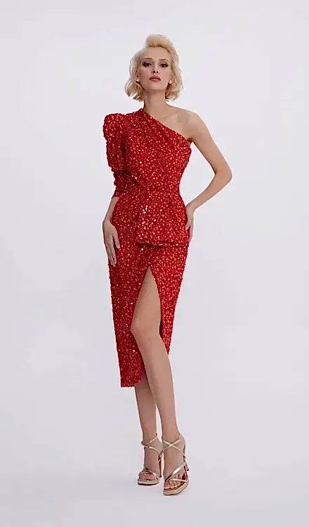 Kırmızı payetli mini elbise