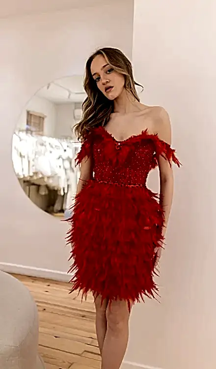 Otrişli Mini Kırmızı elbise
