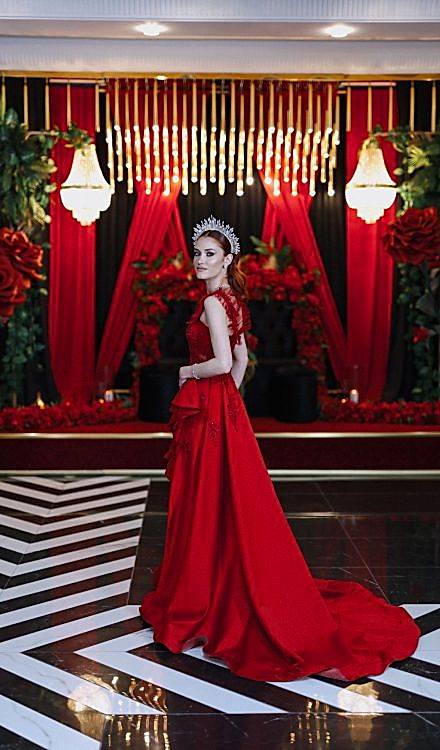 3D ÇİÇEK İŞLİ KIRMIZI KINA ELBİSESİ