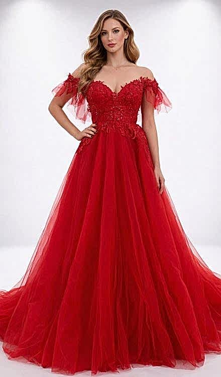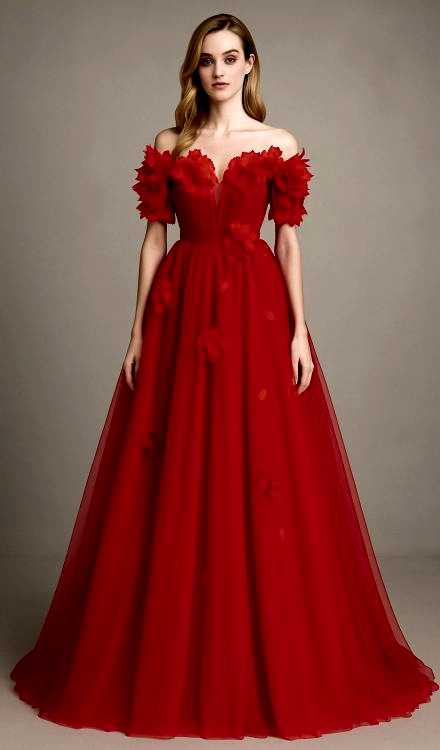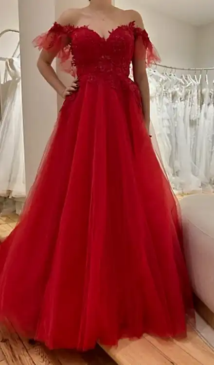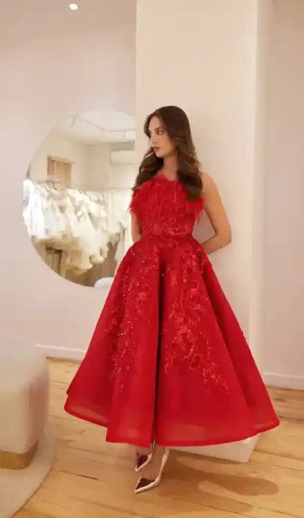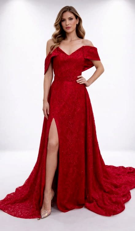 Narin Moda – Kırmızı Düşük Omuzlu Kına Elbisesi
