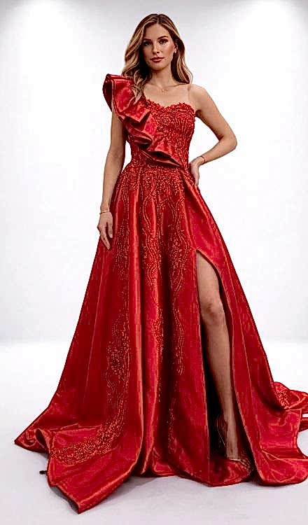 Alfabeta Kırmızı Fırfırlı Abiye