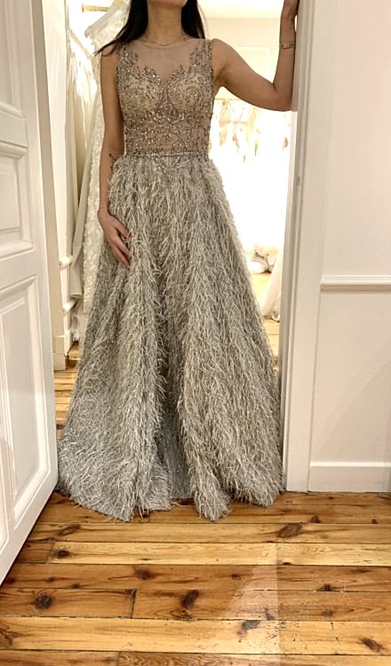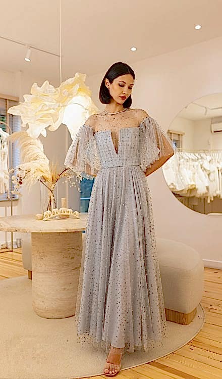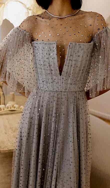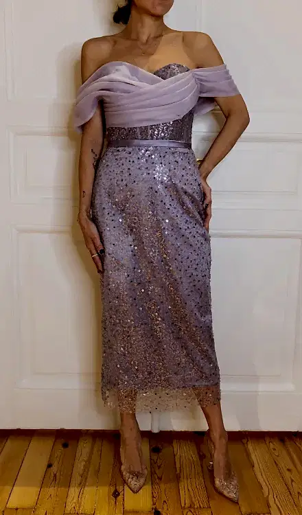 Burak Bayraktaroğlu – Gri Simli Midi Elbise