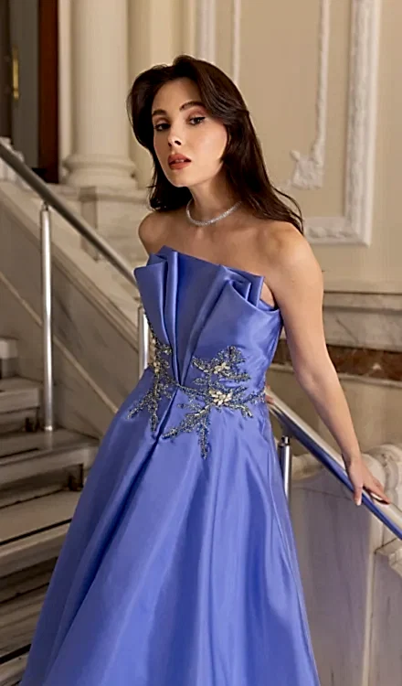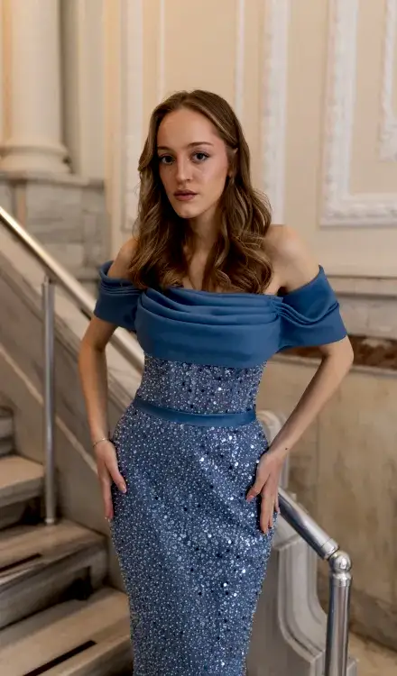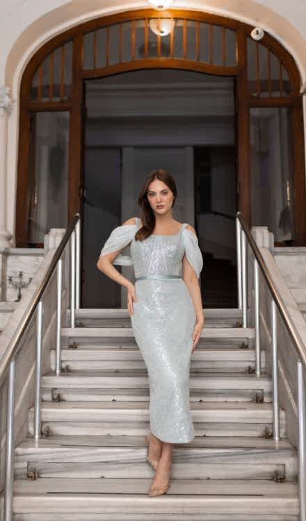 Belinda – Taş Detaylı Saks Mavisi Abiye