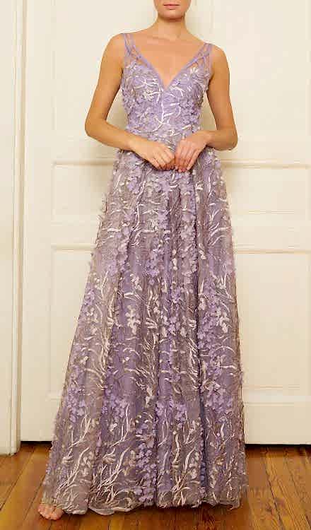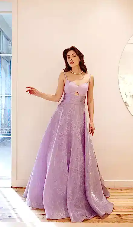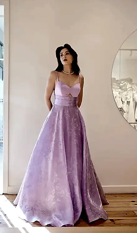Çiçek Baskılı Lila Maxi Abiye Elbise