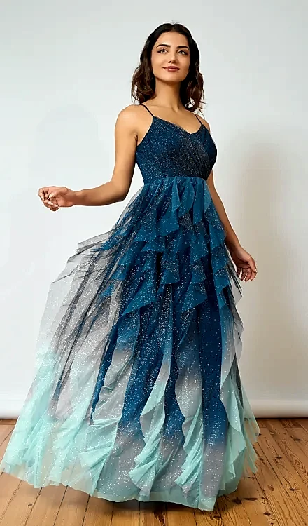 My Little Princess – Fırfırlı Lacivert Maxi elbise