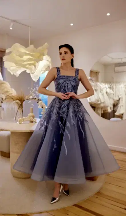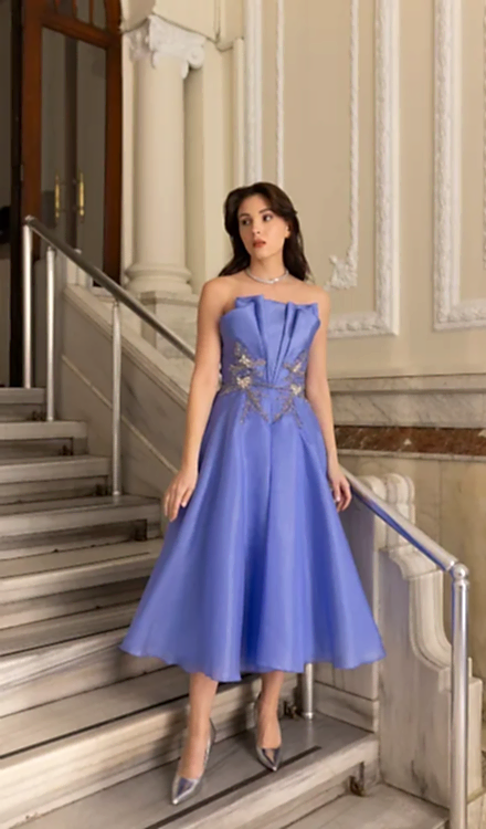 Zeynep Filoğlu – Mavi İşlemeli Midi Elbise