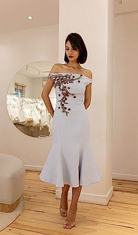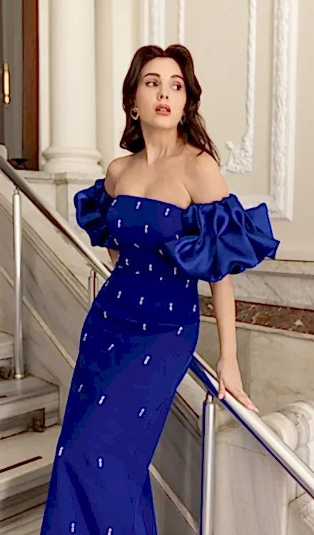 RTNC – Isabel – Mavi Düşük Omuzlu Midi Elbise